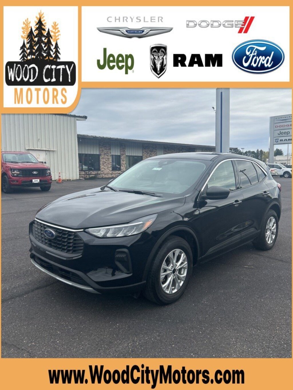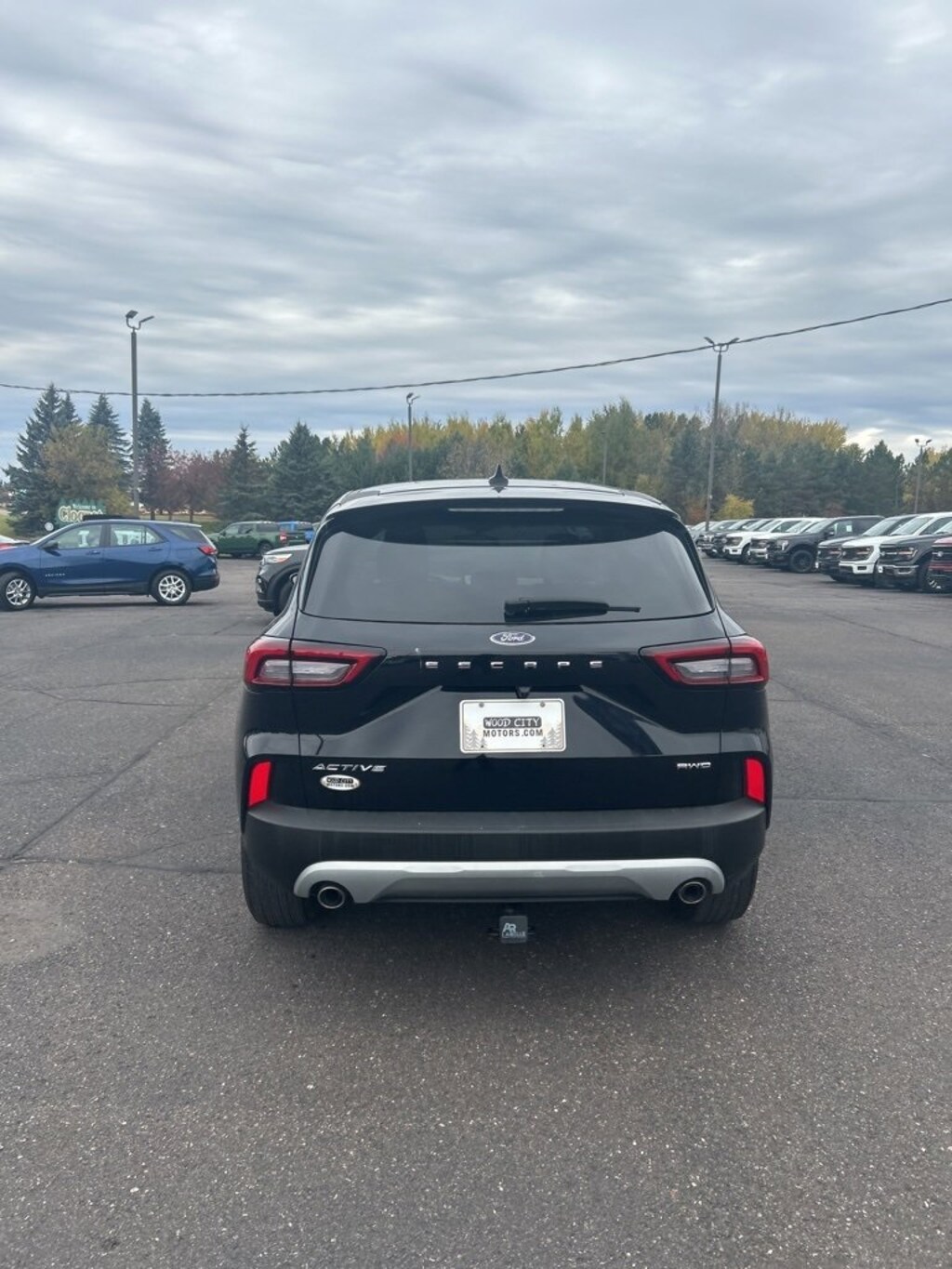 Ford Gold Certified. Clean One Owner AWD, 3.81 Axle Ratio, 4-Wheel Disc Brakes, 6 Speakers, ABS brakes, Air Conditioning, Alloy wheels, AM/FM radio: SiriusXM, AM/FM Stereo, Auto High-beam Headlights, Automatic temperature control, Brake assist, Bumpers: body-color, Compass, Delay-off headlights, Driver door bin, Driver vanity mirror, Dual front impact airbags, Dual front side impact airbags, Electronic Stability Control, Emergency communication system: SYNC 4 911 Assist, Exterior Parking Camera Rear, FordPass Connect, Four wheel independent suspension, Front anti-roll bar, Front Bucket Seats, Front Center Armrest, Front dual zone A/C, Front reading lights, Fully automatic headlights, Heated door mirrors, Heated front seats, Heated steering wheel, Illuminated entry, Knee airbag, Low tire pressure warning, Occupant sensing airbag, Outside temperature display, Overhead airbag, Overhead console, Panic alarm, Passenger door bin, Passenger vanity mirror, Power door mirrors, Power driver seat, Power Liftgate, Power steering, Power windows, Radio data system, Rear anti-roll bar, Rear reading lights, Rear seat center armrest, Rear window defroster, Rear window wiper, Remote keyless entry, Speed control, Speed-sensing steering, Speed-Sensitive Wipers, Split folding rear seat, Spoiler, Steering wheel mounted audio controls, SYNC 4, Tachometer, Telescoping steering wheel, Tilt steering wheel, Traction control, Trip computer, Unique Cloth Front Bucket Seats, Variably intermittent wipers, Wheels: 17" Shadow Silver-Painted Aluminum, AWD. Black 2023 Ford Escape Active AWD 8-Speed Automatic 1.5L EcoBoost