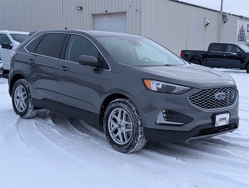 2024 Ford Edge Gray Metallic AWD, 3.80 Axle Ratio, 4-Wheel Disc Brakes, 6 Speakers, ABS brakes, ActiveX Trimmed Heated Bucket Seats, Air Conditioning, Alloy wheels, AM/FM radio: SiriusXM with 360L, AM/FM Stereo, Auto High-beam Headlights, Auto-dimming Rear-View mirror, Automatic temperature control, Brake assist, Bumpers: body-color, Compass, Delay-off headlights, Driver door bin, Driver vanity mirror, Dual front impact airbags, Dual front side impact airbags, Electronic Stability Control, Emergency communication system: SYNC 4 911 Assist, FordPass Connect, Four wheel independent suspension, Front anti-roll bar, Front Bucket Seats, Front Center Armrest w/Storage, Front dual zone A/C, Front reading lights, Fully automatic headlights, Heated door mirrors, Heated front seats, Illuminated entry, Knee airbag, Leather steering wheel, Low tire pressure warning, Occupant sensing airbag, Outside temperature display, Overhead airbag, Overhead console, Panic alarm, Passenger door bin, Passenger vanity mirror, Power door mirrors, Power driver seat, Power Liftgate, Power passenger seat, Power steering, Power windows, Rear anti-roll bar, Rear Parking Sensors, Rear reading lights, Rear seat center armrest, Rear window defroster, Rear window wiper, Remote keyless entry, SiriusXM w/360L, Speed control, Speed-Sensitive Wipers, Split folding rear seat, Spoiler, Steering wheel mounted audio controls, SYNC 4A w/Enhanced Voice Recognition, Tachometer, Telescoping steering wheel, Tilt steering wheel, Traction control, Trip computer, Variably intermittent wipers, AWD. SEL AWD 8-Speed Automatic EcoBoost 2.0L I4 GTDi DOHC Turbocharged VCT