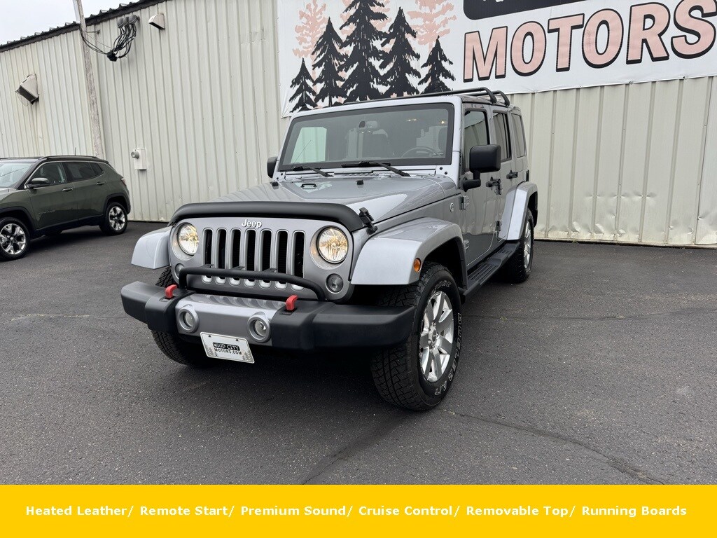 Local Trade, No Accident, Leather Seats, Bluetooth, Sunroof, Heated Seats, Power Windows, Subwoofer, Cruise Control, Folding Seats, Removable top, Remote Start, Keyless Remote Entry, Premium Sound System, Running Boards. Billet Silver Metallic Clearcoat 2018 Jeep Wrangler JK Unlimited Sahara 4WD 5-Speed Automatic 3.6L V6 24V VVT